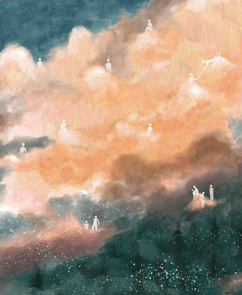 The painting depicts hopeless little people living between the heavens and the earth. Hopeless in their longing to be loved, longing to be desired, longing for answers, or merely longing to be seen.