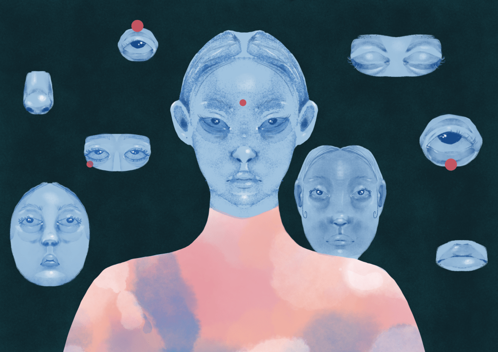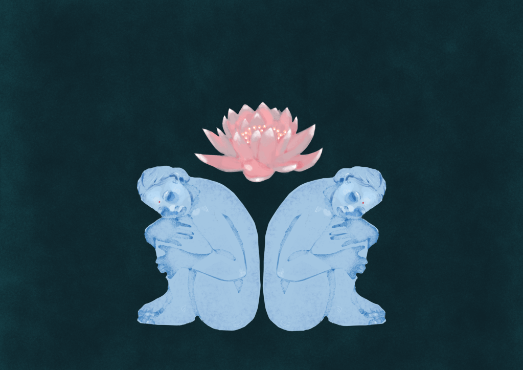 The painting is a homage to being at peace with body dysmorphia. It reflects on societal expectations of a perfect body and the influence it has on us, especially young minds, to achieve such a body image.