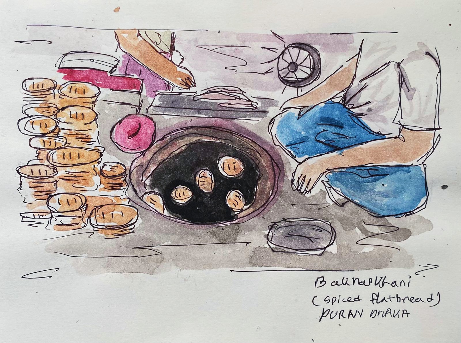 Watercolor sketches from a heritage walk in Puran Dhaka (old Dhaka).